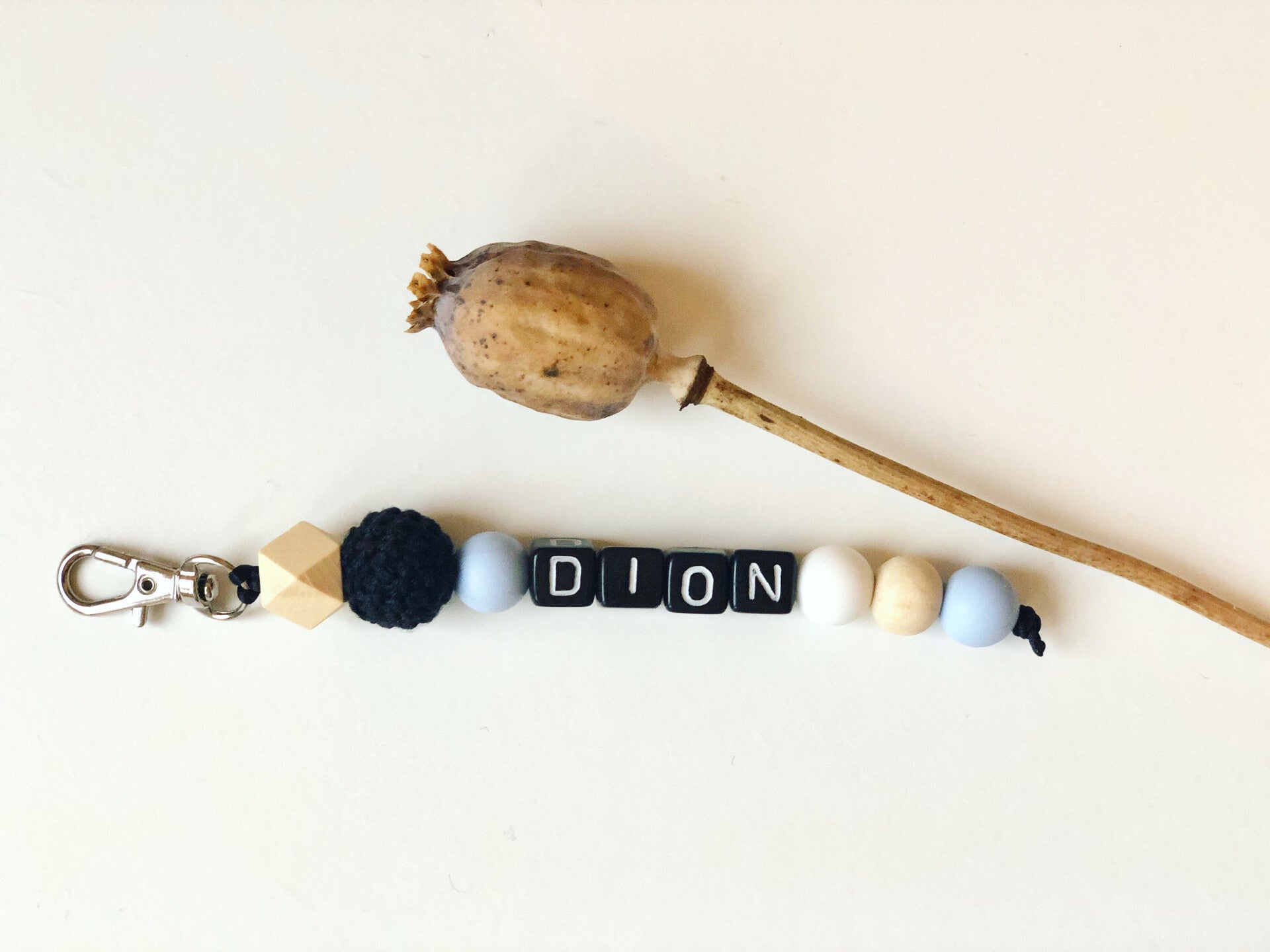 - Lange sleutelhanger: 10 kralen incl. naam